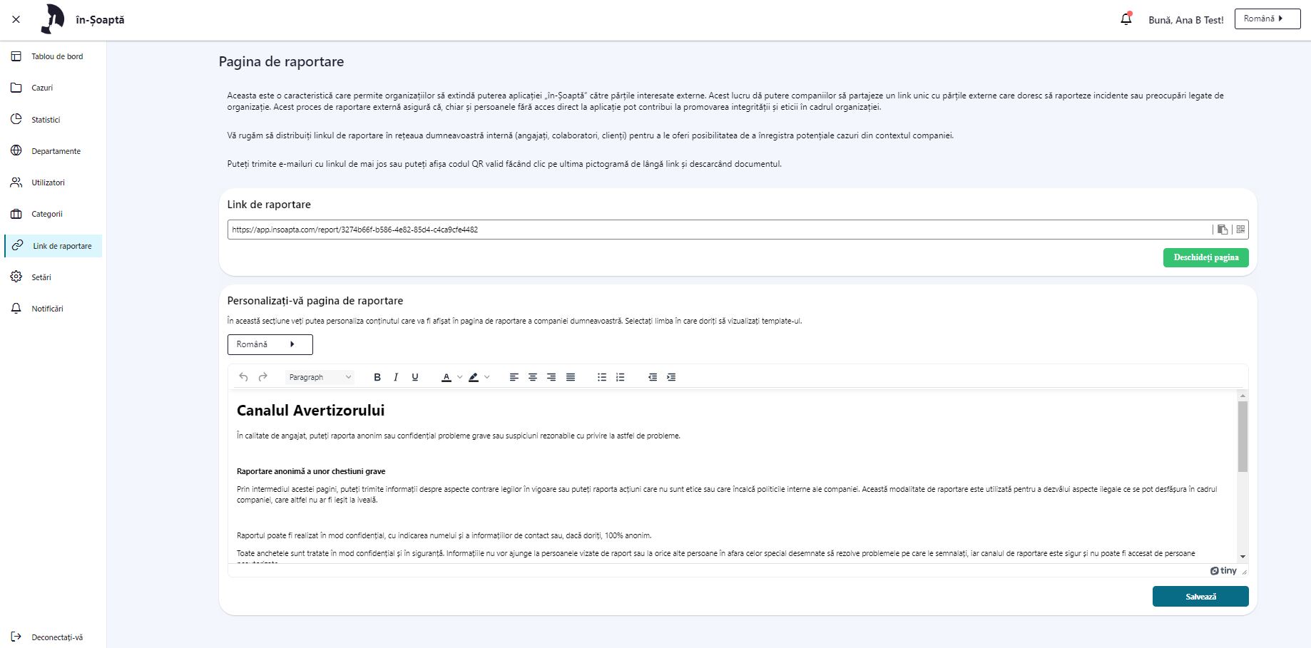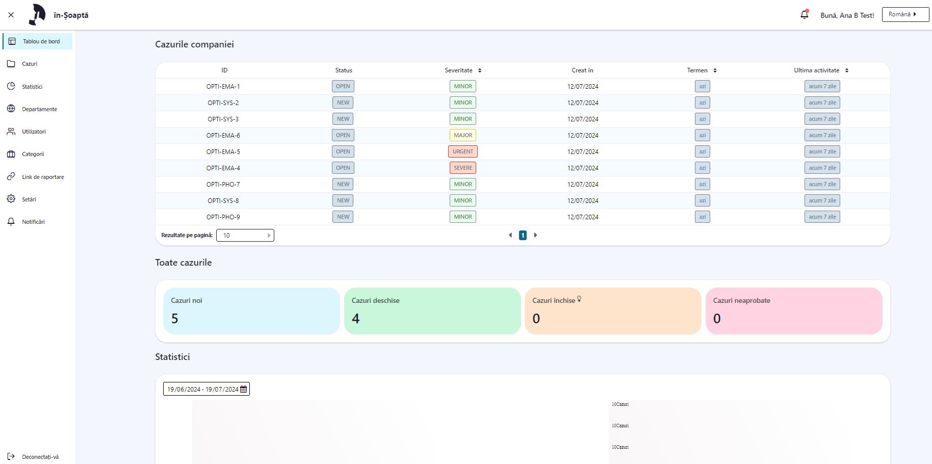 Pagina de Dashboard, centrul de comandă centralizat din cadrul în Șoaptă, adaptată nevoilor dumneavoastră de raportare internă.