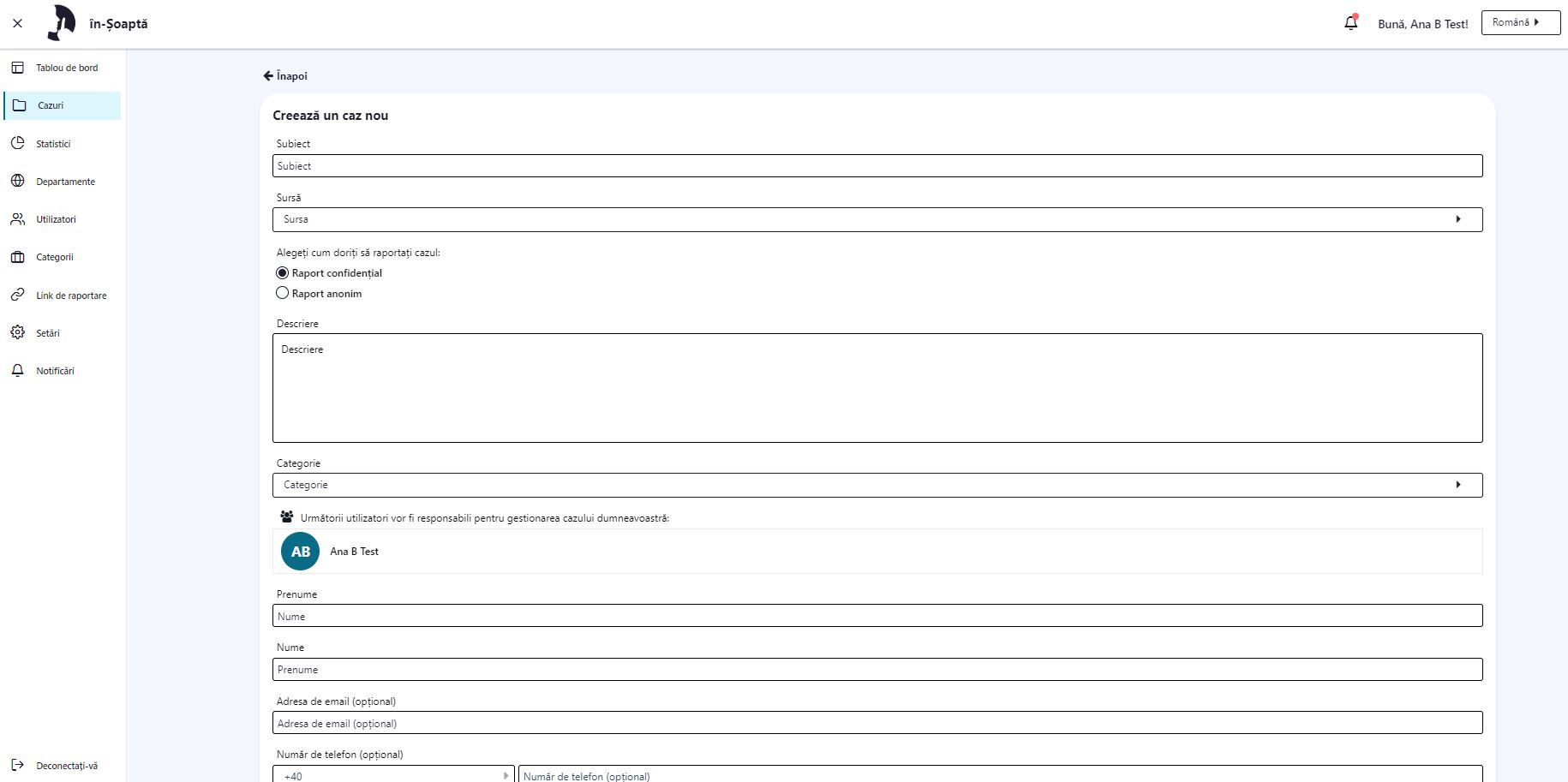 Puteți adăuga manual un caz în scenariul în care un avertizor nu accesează direct sistemul (poștă fizică, telefon, comunicare verbală etc.)
